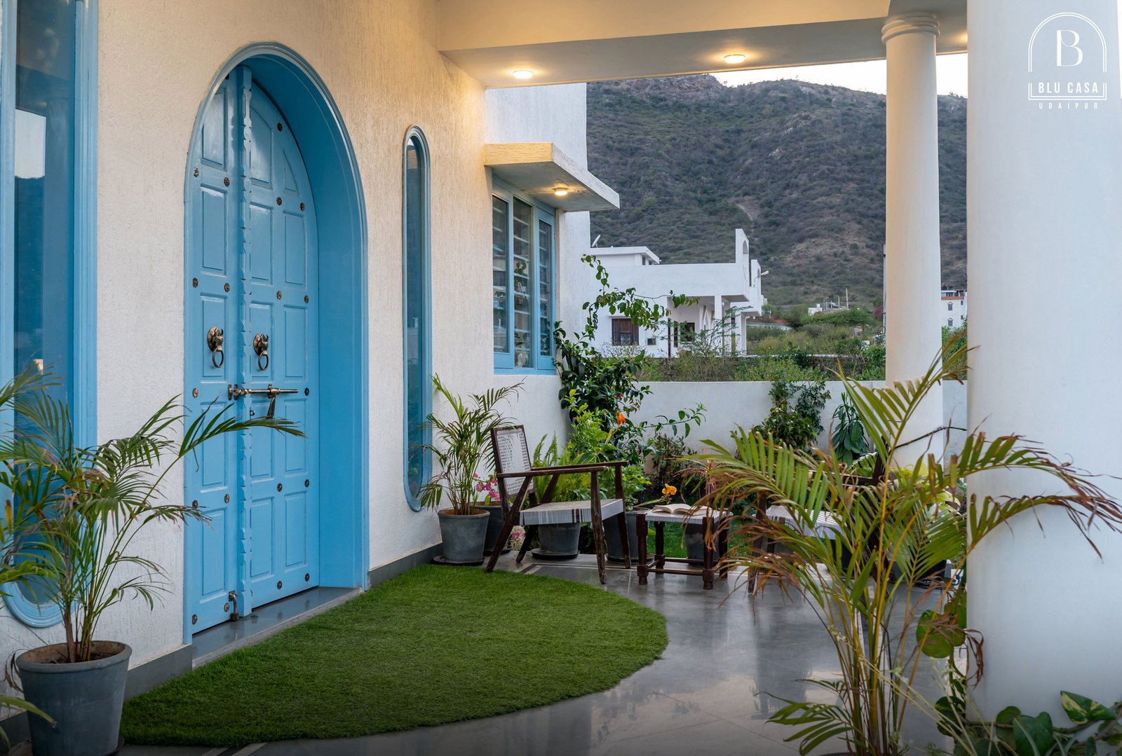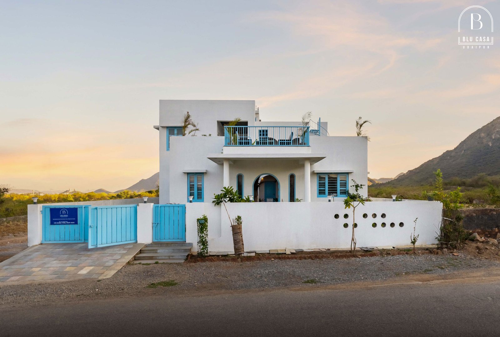 A beautiful & luxurious Greek architectured villa amid the Aravalli hills, just a few kilometres away from the famous Lake Fatehsagar. The villa is situated at a serene location, featuring 6 huge bedrooms with attached bathrooms, a well-equipped kitchen, and a rooftop sit-outs. Furthermore, there is a courtyard pool in the yard for enjoying some pool time.